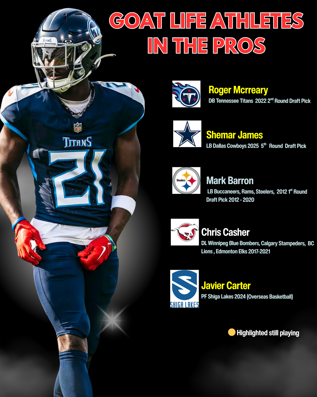 - Trained 50+ Athletes who earned college scholarships through the Goat Life Performance System.