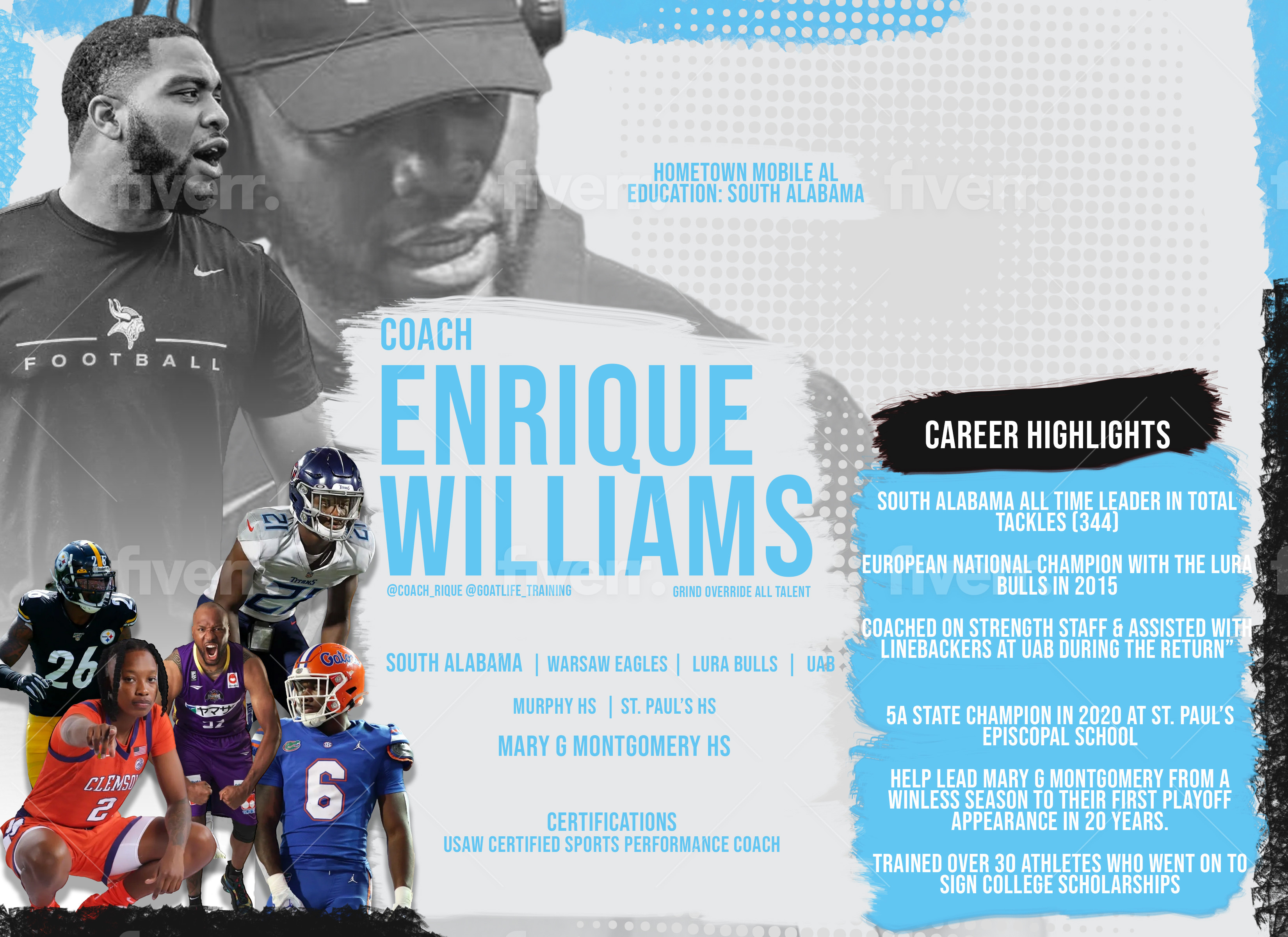 - Former Collegiate Coachβ part of the strength staff and coaching staff that led to the return of UAB football.